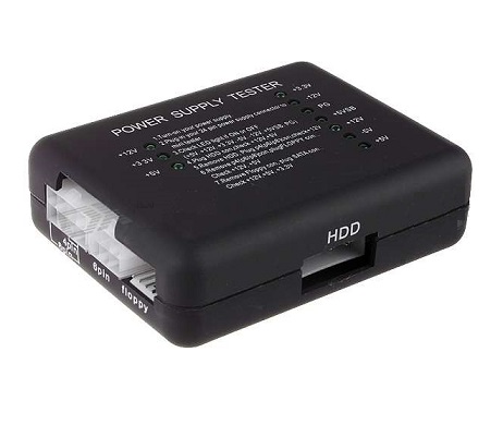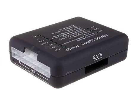 - Tests ATX power supply connector from PSU, regular HDD/DVD power connector, and
