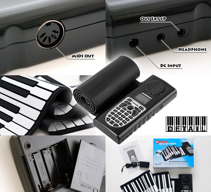 The 61 Keys Roll-Up Piano (Soft Silicone Keyboard) is a small and can be hand carried easily. It can also be rolled up for easy storage in your hand or carrying case. It has wonderful function & compact design. This standard electronic keyboard contains 61 keys from C2 to C7.