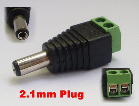 - The 2.1mm DC Plug features a DC 2.1mm plug and connector with mark polarity.