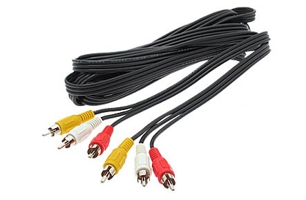 AV Cable with 3 x RCA to 3 x RCA connectors. The 3 RCA AV Cable connects video equipment of audio and video output to TV, HDTV, LCD-TV, projectors of audio and video input. AV Cable with bonded construction design for neat, easy connection of video and audio devices!
