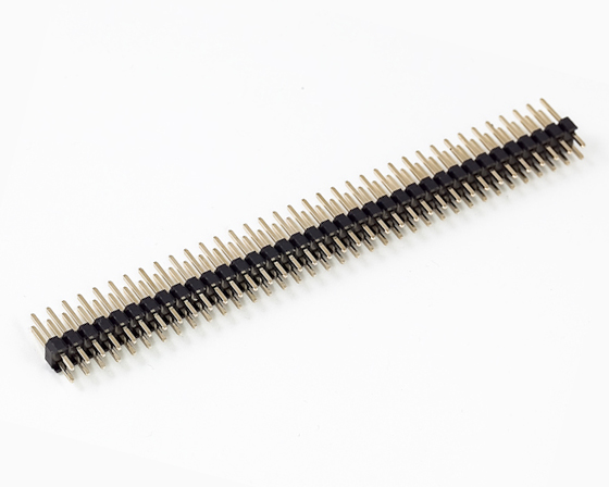 Straight Pin Header P2.54 2X40 Male, used for jumpers, connectors etc. This connector is a double-row, 40-pin, straight male header strip that can be broken into smaller strips.